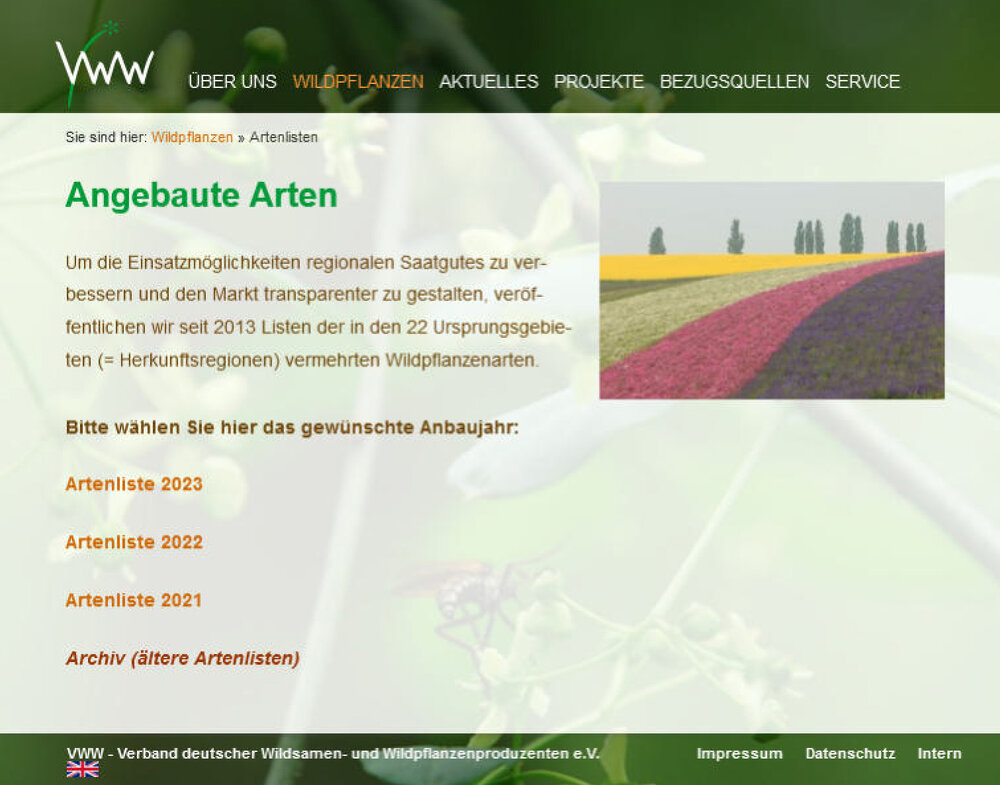 Auf der Homepage des Verbands deutscher Wildsamen- und Wildpflanzenproduzenten e.V. können alle nach "VWW-Regiosaaten" vermehrten Arten angesehen werden - auch unsere und die unserer Partnerbetriebe.