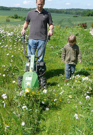 Wir empfehlen für den Naturschutz moderne Doppelmessermähwerke, die heute relativ hohe Flächenleistungen erreichen und gleichzeitig auch auf etwas unebenen oder mit Bäumen bestandenen Flächen flexibel mit kleineren Schleppern einsetzbar sind. Bei Einhalten einer Schnitthöhe von mindestens 7 cm werden viele Tierarten der Wiesen geschont.