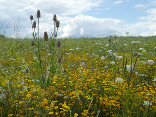 Pflege: Eine Pflege ist nicht erforderlich. Falls aus optischen Gründen erwünscht, möglichst erst im Frühjahr die trockenen Stängel des Vorjahres vor dem Neuaustrieb der Kräuter zurückschneiden. So bleiben Winterquartiere für Wildbienen und andere Insekten erhalten. Sollten Ampfer- und Distelplatten auftreten, Nester bitte frühzeitig abmähen bzw. Einzelexemplare schnellstmöglich ausreßen.